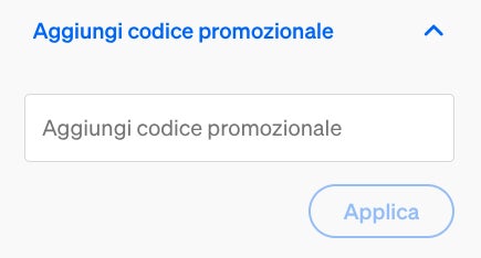 - Clicca sulla scritta “Aggiungi codice promozionale” e incolla il codice del coupon che hai copiato.