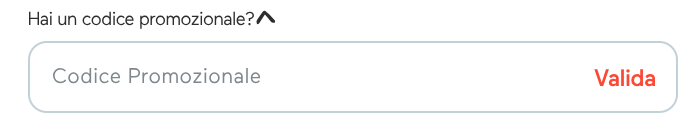 - Clicca sulla scritta “Hai un codice promozionale?” e incolla il codice del coupon che hai copiato.