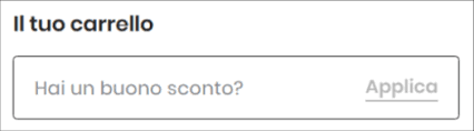 - Vai al carrello e in alto a destra trovi un box con all’interno la scritta “Hai un buono sconto?”.