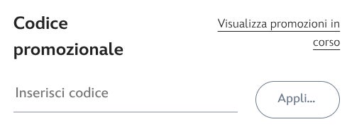 - Vai al carrello. Sulla destra della pagina nella sezione dedicata al riepilogo dell’ordine, trovi il riquadro con la scritta “Codice promozionale”.