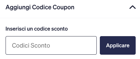 - Clicca sulla scritta “Aggiungi codice coupon” e incolla il codice del coupon che hai copiato.