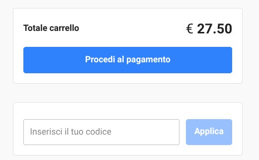 - Vai al carrello. Sulla destra della pagina, sotto il tasto blu “Procedi al pagamento”, trovi la scritta “Aggiungi un codice sconto”.