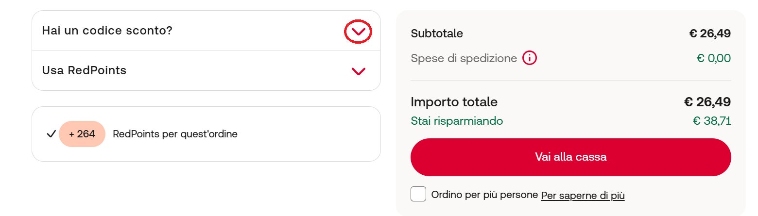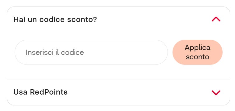 - Clicca su "Hai un codice sconto?" per aprire l'apposito spazio dedicato alle offerte.