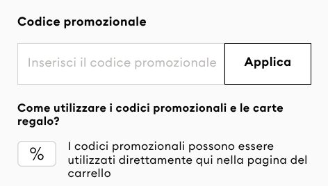 - Vai al carrello. Sulla destra della pagina, trovi il riepilogo dell’ordine. Sotto il totale da pagare, c’è la scritta “Codice promozionale”.