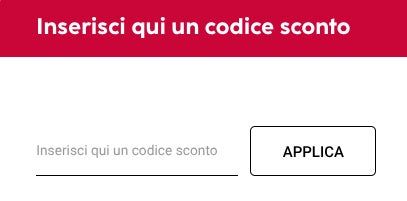 - Vai al carrello. Sulla destra trovi un box rosso con la scritta “Inserisci qui un codice sconto”.