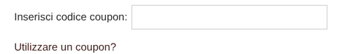 - Vai al carrello e sotto gli articoli selezionati trovi la scritta “Inserisci codice coupon”.