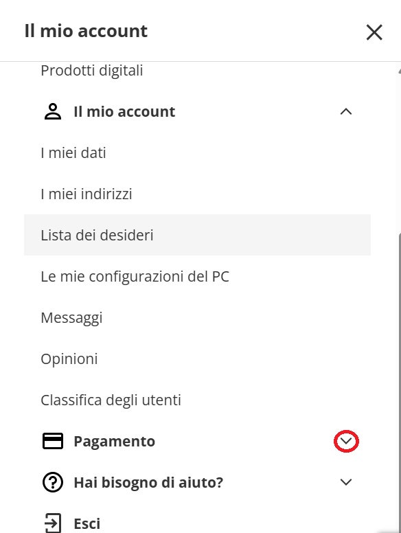 - Scorri le opzioni fino a "Pagamento" e clicca sulla freccina che punta il basso sulla destra.